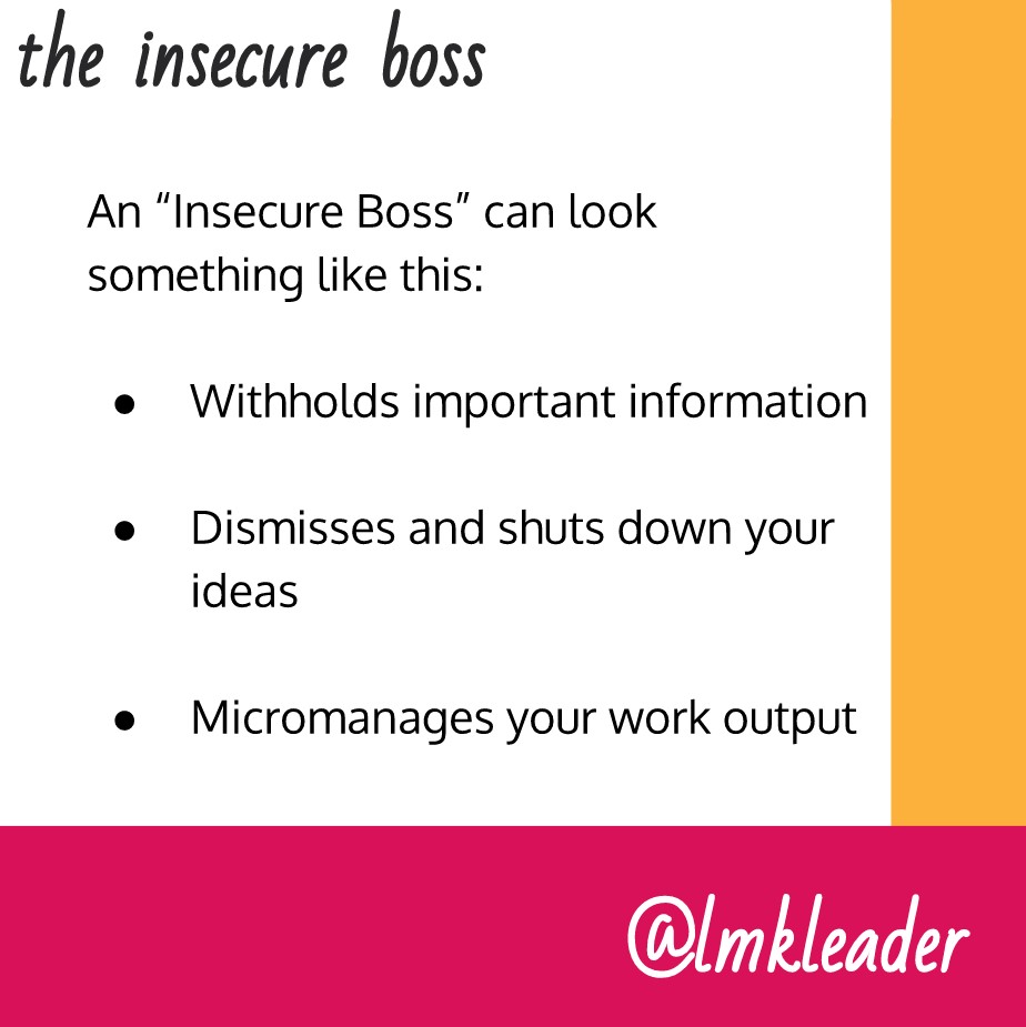 For what reasons an Insecure Boss feels insecure, you are welcome to figure out for yourself – ask them how they grew up, where they are from, how they got this position – and you will be on your way to solving that riddle.