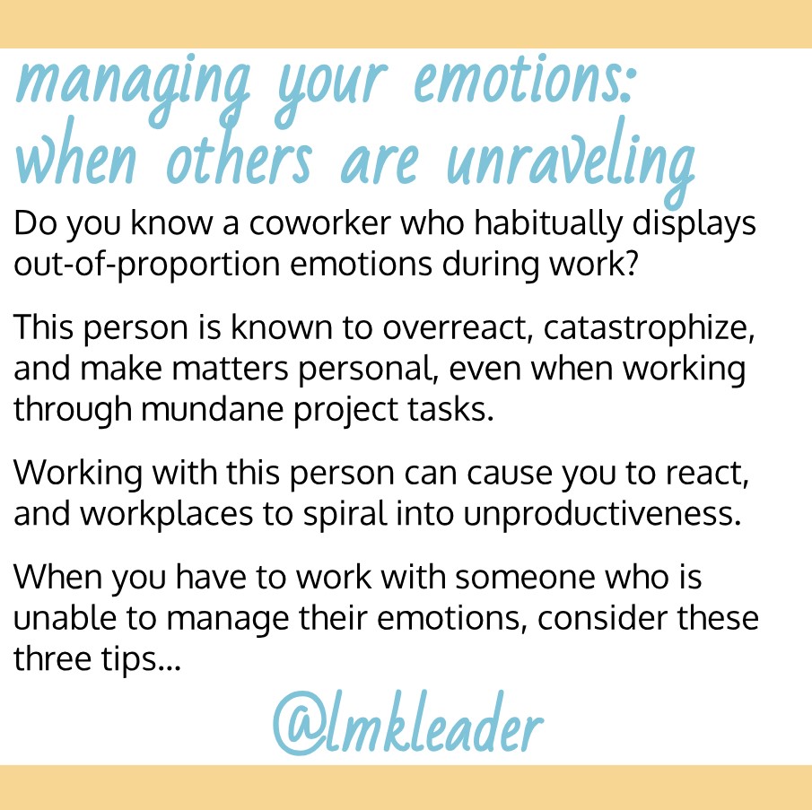 When the work environment will not change and you have to continue to work with someone who is unable to manage their emotions, consider these three tips: